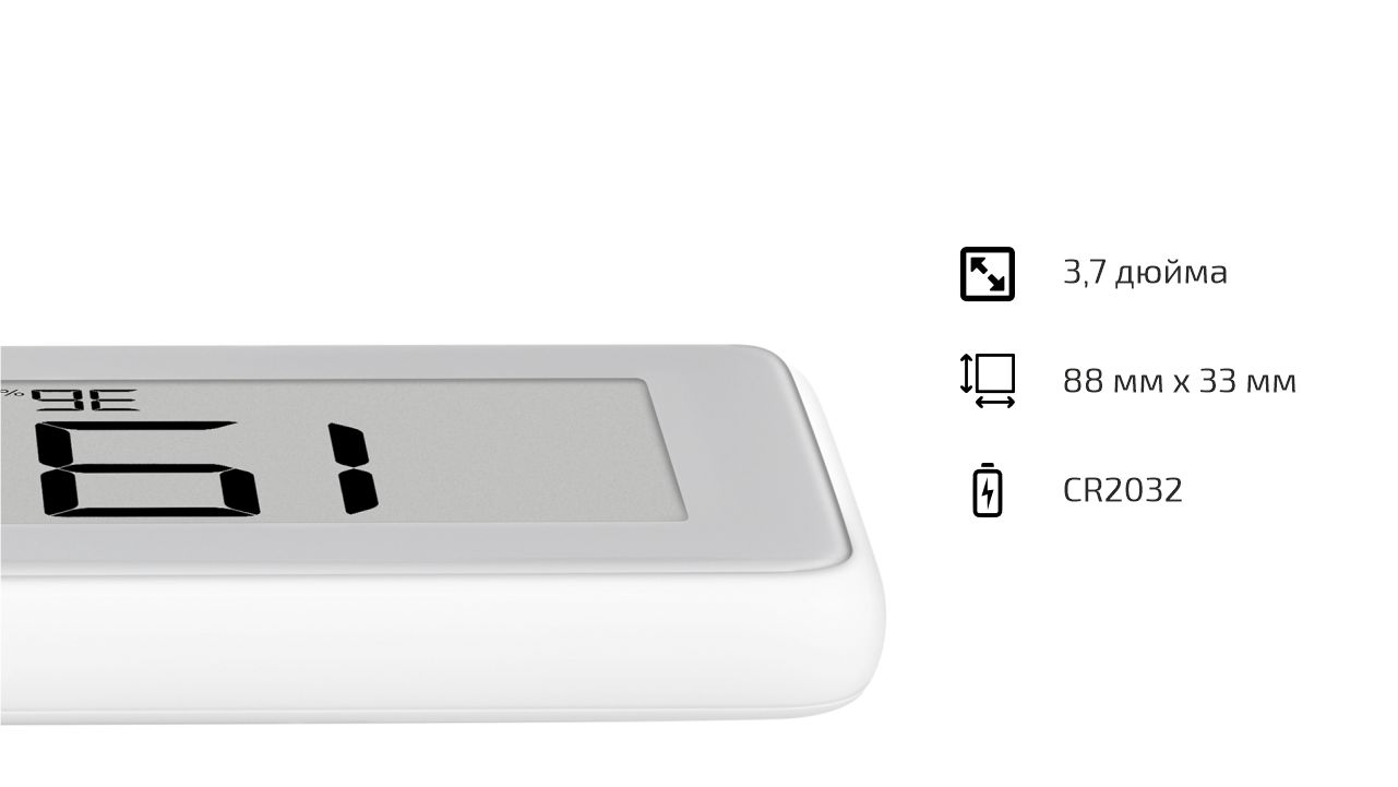 Первое, что бросается в глаза - это удивительно чёткий монохромный экран с диагональю 3,7 дюйма (88x33 мм) и технологией электронной бумаги. Благодаря такому выбору удалось достигнуть сразу нескольких важных преимуществ: широкий угол обзора, идеальная читаемость и огромный срок службы. Как заявляет производитель, достаточно всего двух батареек CR2032 для целого года работы!