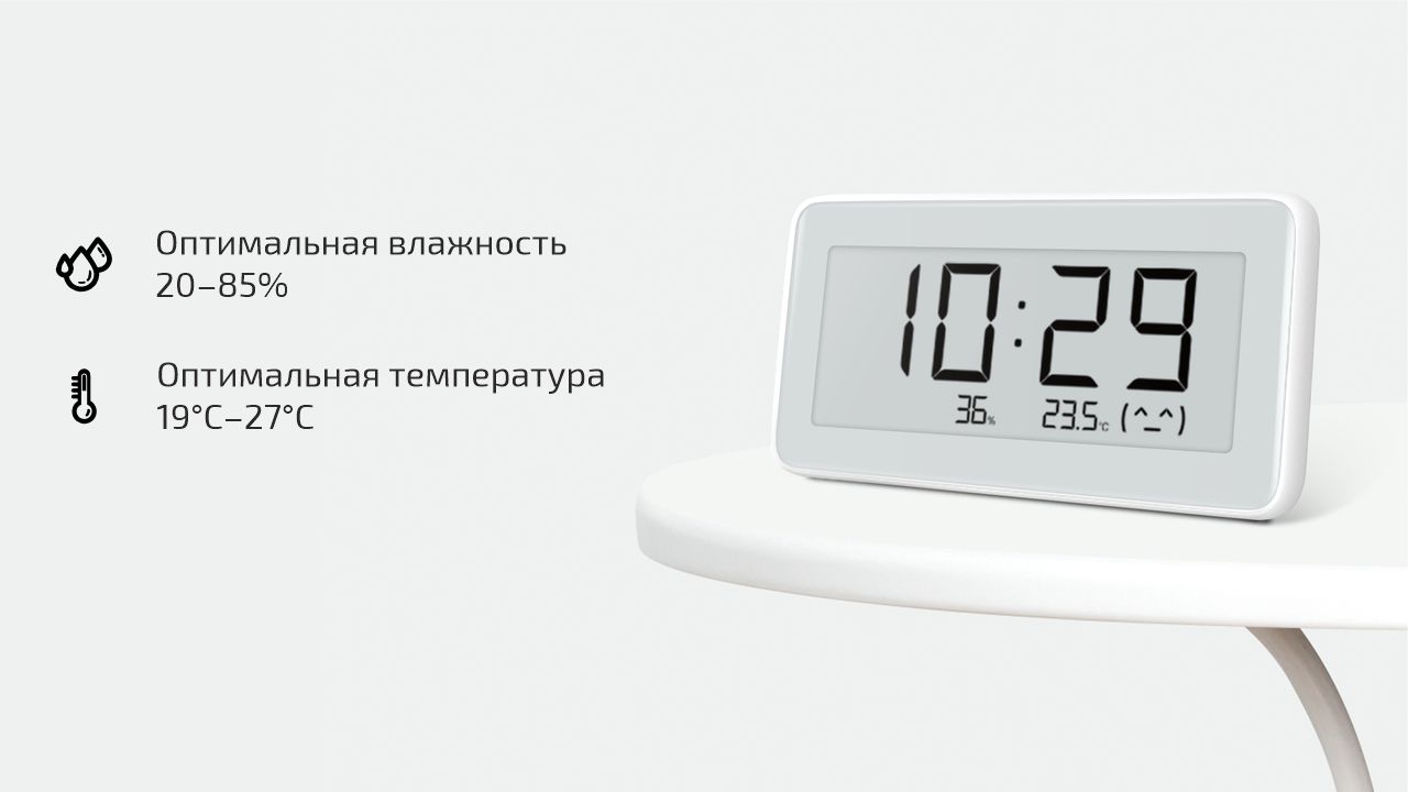 Xiaomi Temperature and Humidity Monitor Clock - это не только симпатичный аксессуар, но и важный инструмент для контроля условий в помещении. Для этого устройство достаточно подсоединить к системе «умного дома» Mi Home. После этого все полученные датчиком данные будут в автоматическом режиме передаваться в систему. Дальше вы сможете не только просматривать всю статистику, но и использовать их для создания простых или сложных сценариев. Например, можно настроить так, чтобы при повышении температуры выше заданной включался кондиционер или вентилятор. Или увлажнитель отключался при достижении желаемых параметров. Или же сделать вообще совершенно самостоятельную систему, которая будет создать комфортную и здоровую атмосферу для вас и ваших близких.