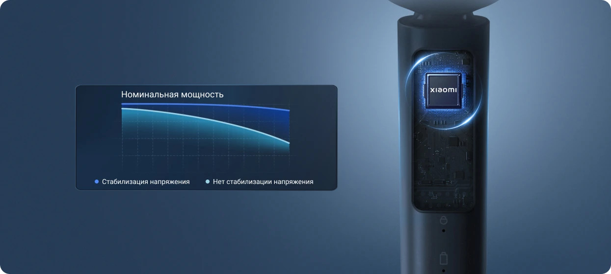 Интеллектуальное управление скоростью обеспечивает стабильную высокую скорость, сохраняя высокую мощность даже при низком заряде батареи и позволяя непрерывно бриться без защемления волос.