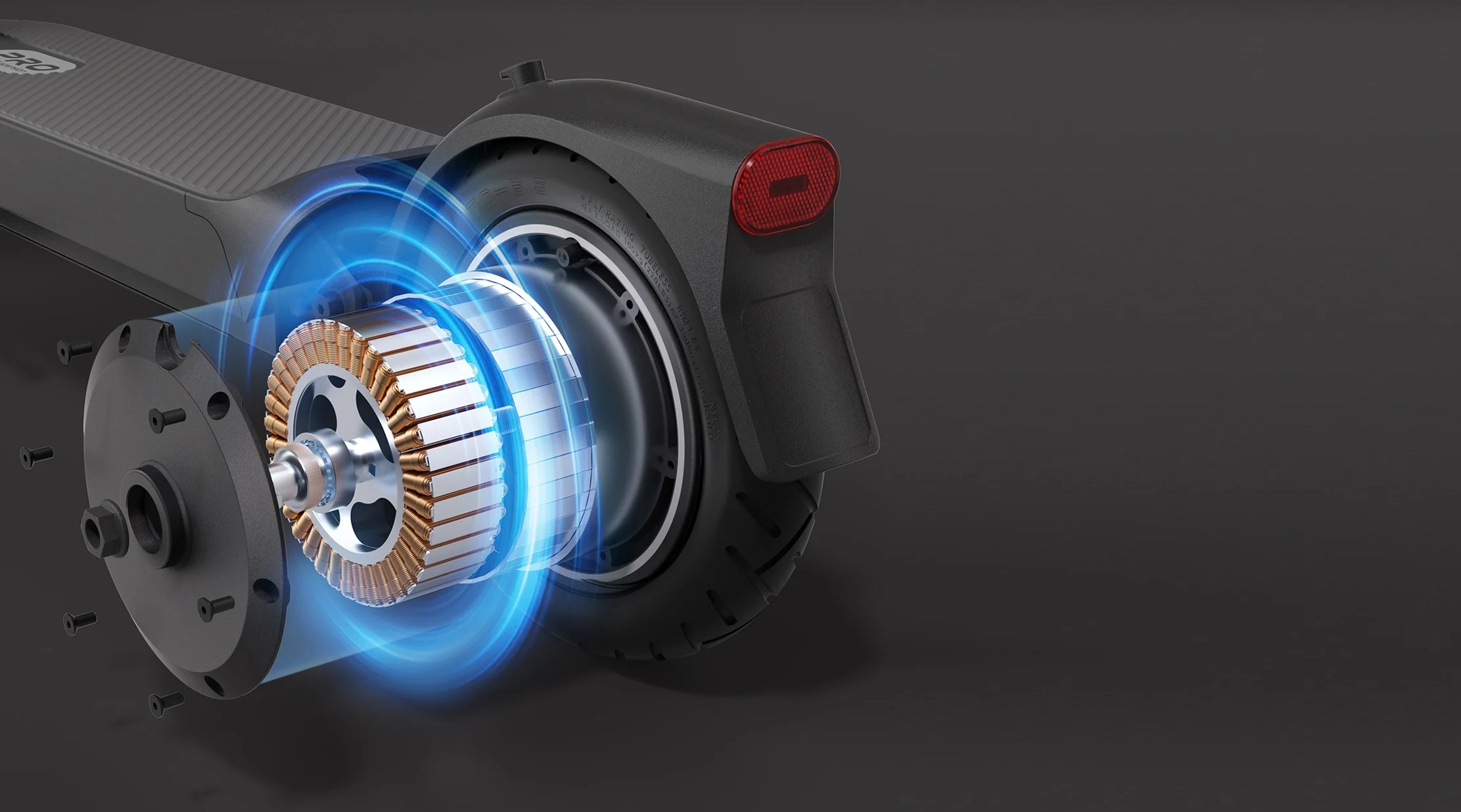 | Особенности | 3 скоростных режима, cистема рекуперации кинетической энергии, бесщеточный двигатель, влагозащита IPX5, задний стоп-сигнал, система интеллектуального управления BMS, указатель поворота, функция автоматического включения фары и заднего фонаря, передний и задний амортизаторы |