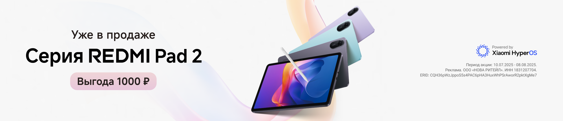 Новая серия планшетов уже в продаже с выгодой 1000 рублей! Redmi Pad 2 — идеальный спутник для работы и отдыха. 11-дюймовый экран с разрешением 2.5K и частотой обновления 90 Гц дарит яркое и плавное изображение, а технология AdaptiveSync делает каждое движение на дисплее максимально комфортным. Процессор MediaTek Helio G100-Ultra и оптимизированная HyperOS 2 обеспечивают быстрый отклик и плавную работу в любых задачах.